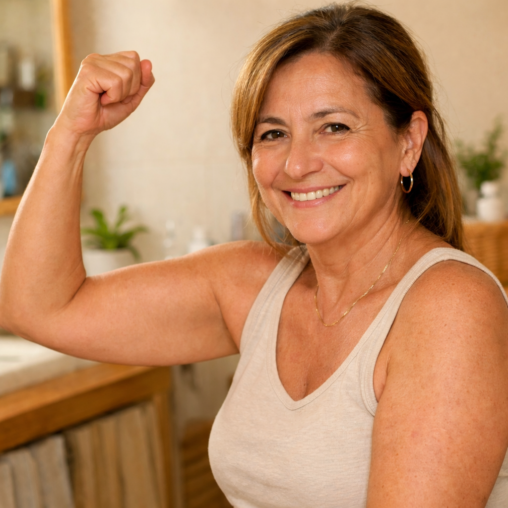 "Tengo 57 años y empecé a usar esta crema sin muchas expectativas, pero la verdad es que me ha sorprendido. Noto la piel de los brazos más firme y mucho más hidratada, sin efecto artificial. Se absorbe rápido y es fácil de usar en el día a día. Un cambio sutil, pero real"